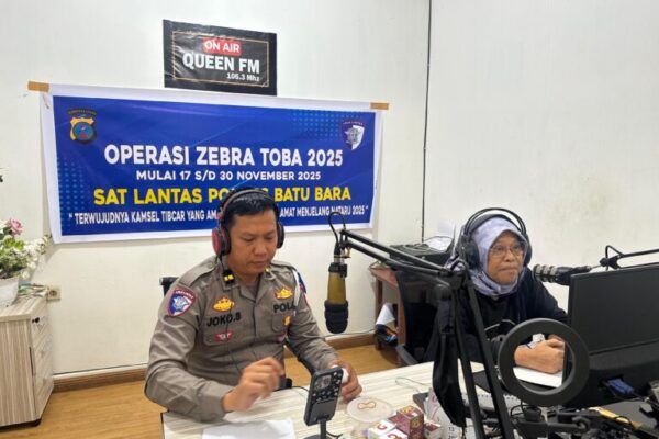 Batu Bara – jurnalpolisi.id Satuan Lalu Lintas (Satlantas) Polres Batu Bara melaksanakan sosialisasi Operasi Zebra Toba 2025 melalui siaran Radio Queen 105.3 FM Indrapura pada Selasa, 18 November 2025. Kegiatan ini dipimpin langsung oleh Kasatlantas Polres Batu Bara, AKP Simon E. Simatupang, S.H., M.H., yang hadir sebagai narasumber untuk memberikan edukasi kepada masyarakat terkait pentingnya…