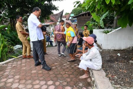 Bupati Humbahas Dosmar Banjarnahor, S.E bersama anggota DPRD Humbahas Poltak Purba didampingi Kadis PKP Anggiat Simanullang dan jajarannya, para pimpinan OPD lainnya termasuk Camat Baktiraja Sanggam Lumban Gaol dan Kepala Desa Simamora Parningotan Bakkara melakukan peninjauan penataan lingkungan desa di Desa Simamora , Selasa, 7/1/ 2025.