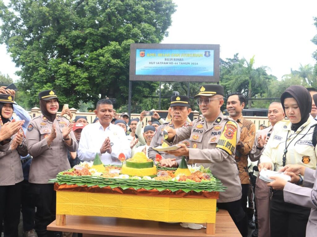 Setelah apel besar, acara dilanjutkan dengan syukuran yang ditandai dengan pemotongan tumpeng sebagai simbol rasa syukur serta kebersamaan. Selain itu, ditampilkan pula peragaan keterampilan penggunaan tongkat T serta baris-berbaris oleh personel Satpam, dengan menunjukkan kesiapan dan kemampuan mereka dalam menjalankan tugas sebagai satuan pengamanan.