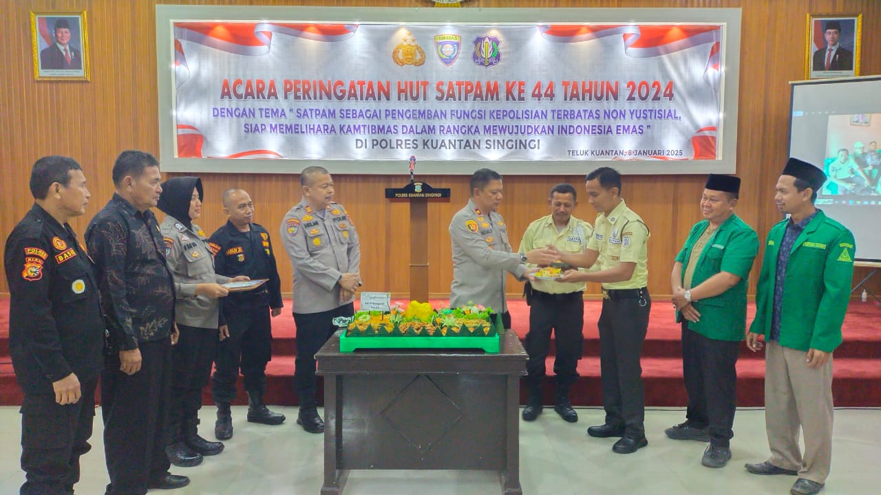 Dalam rangka memperingati Hari Ulang Tahun (HUT) Satpam yang ke-44, Sat Binmas Polres Kuantan Singingi (Kuansing) menggelar acara syukuran yang berlangsung di Aula Sanika Satyawada Polres Kuansing pada Rabu (8/1/2025). Acara ini mengusung tema “Satpam Sebagai Pengemban Fungsi Kepolisian Terbatas Non Yustisial, Siap Memelihara Kamtibmas dalam Rangka Mewujudkan Indonesia Emas” dan dihadiri oleh berbagai pihak dari unsur kepolisian, perusahaan, organisasi masyarakat, serta anggota Satpam se-Kabupaten Kuansing.