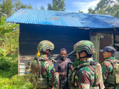 Bapak Metinus Wonda (42th) mengungkapkan rasa senang dan terimakasihnya terhadap personel TNI dari Pos Kelila Satgas Yonif 641/Bru.