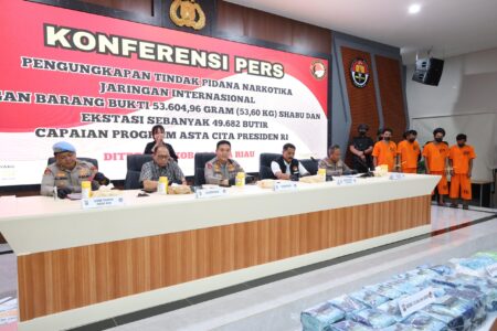 Pada Hari Selasa, 14 Januari 2024 Polda Riau melaksanakan Konferensi Pers yang dipimpin langsung oleh Kapolda Riau Irjen Pol Muhammad Iqbal, S.I.K., M.H. dan di dampingi oleh KA BNNP Riau Brigjen Pol Robinson DP Siregar, S.H. S.I.K, serta didampingi oleh Dir Resnarkoba Polda Riau Kombes Pol Putu Yudha Prawira, Kabid Humas Polda Riau Kombes Pol Anom Karibianto, S.I.K. dan Edwin L.Sengka S.I.K., M.H.