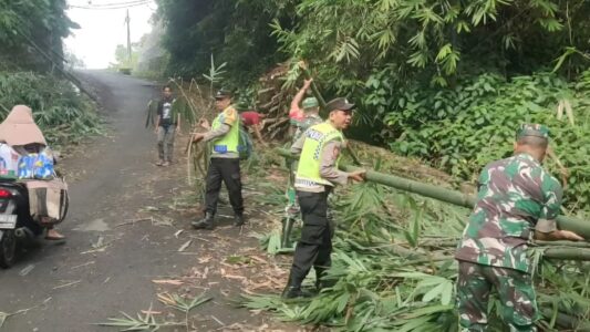 “Tidak ada korban jiwa akibat peristiwa tersebut. Namun arus lalu lintas di lokasi terhambat karena sebagian jalan tertutup rumpun bambu yang roboh,” jelas Kapolsek.