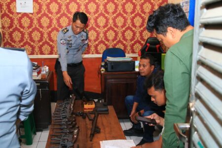 Dalam rangka memastikan keamanan dan kelengkapan administrasi senjata api (senpi) di Lembaga Pemasyarakatan (Lapas) Kelas IIA Banyuwangi, tim dari Polresta Banyuwangi melakukan pemeriksaan menyeluruh terhadap seluruh senpi yang dimiliki oleh Lapas Banyuwangi, Selasa (14/1).