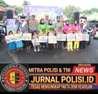 Nampak Kapolres langsung berbaur dengan anak anak TK Kemala Bhayangkari 33, yang juga turut memeriahkan kegiatan di minggu pagi. Anak anak lain yang berada di Alun alun Bung Karno pun, ikut diajak oleh Kapolres untuk bergembira bersama.