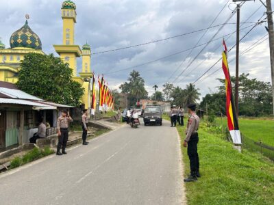 Kepolisian Resor (Polres) Kuantan Singingi (Kuansing) melalui Satuan Samapta, Satlantas, serta personel dari Polsek Kuantan Mudik dan Polsek Hulu Kuantan, melaksanakan pengamanan kegiatan Safari Ramadhan yang dihadiri oleh Wakil Gubernur Riau pada Sabtu (08/03/2025).