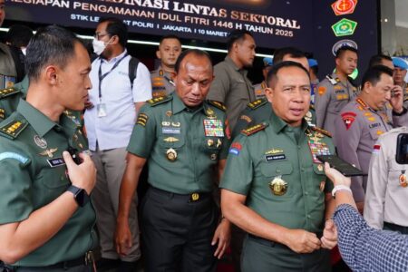Panglima TNI Jenderal TNI Agus Subiyanto menghadiri Rapat Koordinasi Lintas Sektoral dalam rangka kesiapan pengamanan Idul Fitri 1446 H tahun 2025 bertempat di Auditorium Mutiara STIK-PTIK Lemdiklat Polri, Kebayoran Baru, Jakarta Selatan, Senin (10/3/2025).