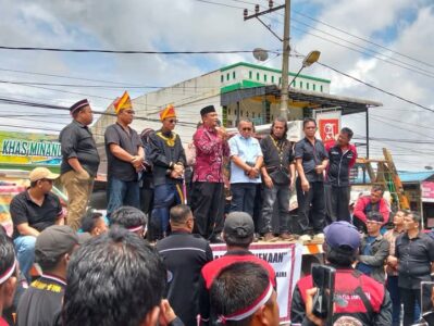 Personel Koramil 02/Sidikalang, Kodim 0206/Dairi, yang dipimpin langsung oleh Danramil Kapten Inf T. Aritonang, bersama dengan personel Polres Dairi, melaksanakan pengamanan aksi unjuk rasa yang digelar oleh Aliansi Masyarakat Pakpak Silima Suak pada Kamis (13/3). Aksi tersebut berlangsung di tiga titik utama, yaitu Polres Dairi, Kantor Bupati Dairi, dan Kantor DPRD Kabupaten Dairi. Unjuk rasa ini dilakukan sebagai bentuk protes terhadap dugaan ujaran kebencian yang dilakukan oleh pemilik akun media sosial bernama Escobar alias Tonggi Saritu Tamba.