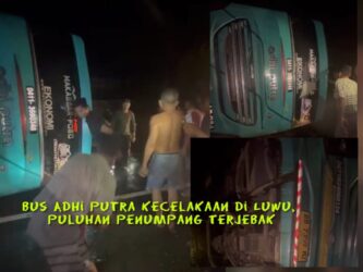 Sebuah bus angkutan umum Adhi Putra dengan nomor polisi DD 7359 MZ, yang melayani rute Makassar – Poso, mengalami kecelakaan tunggal di Kecamatan Suli, Kabupaten Luwu, pada Rabu (19/3/2025) dini hari. Kecelakaan ini diduga akibat jalanan yang licin usai hujan deras yang mengguyur sepanjang malam.