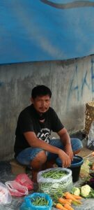 Sambil menikmati secangkir kopi siang bersama Onek panggilan akrab kesehariannya dengan aktivitas seharinya membuka lapak di Jalan Seroja Pasar Kodim mulai dari jam 4 subuh sampai jam 10.30 yang digelutinya hampir puluhan tahun, barang dagangan yang ditawarkan sayur mayur (kol,terong,buncis,bawang,bawang prey) kepada konsumen dan pelanggannya.