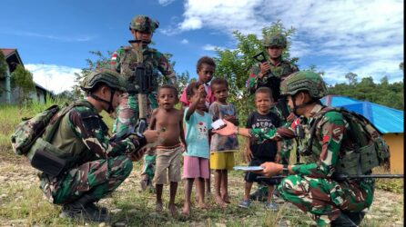 Dalam semangat kebersamaan dan kepedulian sosial, Pos Dataran Beimes Satgas Yonif 642/Kps melaksanakan kegiatan berbagi bingkisan yang ditujukan kepada masyarakat Kampung Horna Distrik Dataran Beimes. (17/7/2025)