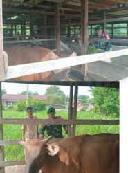 Babinsa Koramil 04/Rupat, Koptu Jumirin, bersama pemilik ternak Bapak Irwan, melaksanakan kegiatan pemantauan Penyakit Mulut dan Kuku (PMK) pada hewan ternak di Desa Dungun Baru, Kecamatan Rupat, Kabupaten Bengkalis, Rabu (20/8) pukul 09.00 WIB hingga selesai.