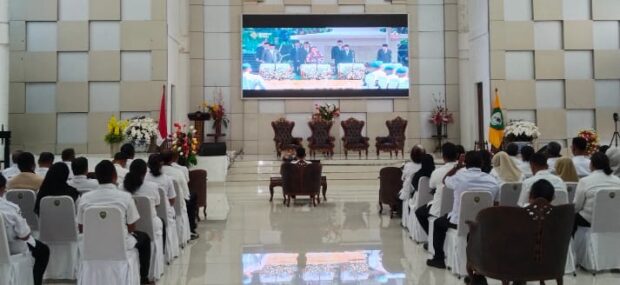 Peringati hari Kesaktian Pancasila Pemerintah Kabupaten (Pemkab) Maluku Tenggara gelar upacara yang berlangsung di aula kantor Bupati, Jln. Abraham Koedoeboen Rabu (01/10/2025).