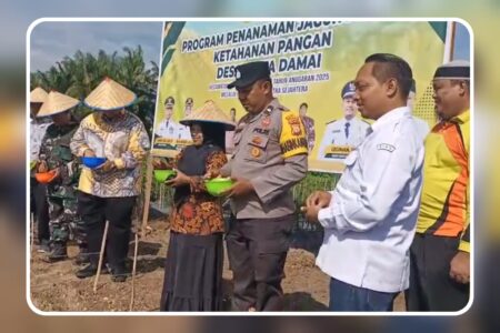 Kepolisian Sektor (Polsek) Tapung Hilir turut mendukung Program Ketahanan Pangan Nasional dengan berpartisipasi dalam kegiatan penanaman jagung pipil di Desa Cinta Damai, Kecamatan Tapung Hilir, Kabupaten Kampar, pada Kamis (2/10/2025) pagi.