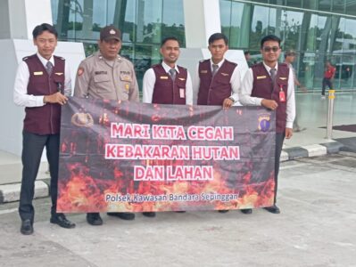 Tidak hanya fokus pada keamanan, petugas juga memberikan imbauan antisipasi kebakaran hutan dan lahan (karhutla) di sekitar area bandara serta kawasan lahan kosong yang berpotensi disalahgunakan.