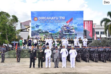 TNI AL, Dispen Kormar Sorong Suasana Alun-Alun Aimas Kabupaten Sorong mendadak riuh oleh sorak dan tepuk tangan masyarakat yang terpukau menyaksikan aksi spektakuler prajurit khusus Pasmar 3 dalam demonstrasi pembebasan sandera Atraksi memukau ini digelar pada puncak peringatan Hari Ulang Tahun (HUT) ke-80 Tentara Nasional Indonesia (TNI) tahun 2025 bertempat di Alun-Alun Aimas Jalan Sorong–Aimas Malawili Distrik Aimas Kabupaten Sorong Papua Barat Daya Minggu (05/10/2025).