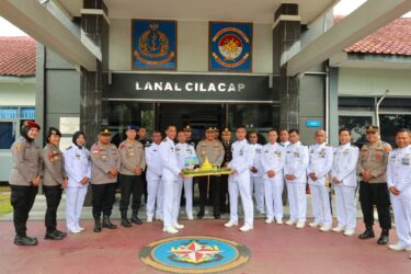 Kegiatan pertama berlangsung di Markas Pangkalan Angkatan Laut (Lanal) Cilacap. Kapolresta Cilacap Kombes Pol Budi Adhy Buono, S.H., S.I.K., M.H., hadir langsung bersama pejabat utama dan personel Polresta untuk menyerahkan tumpeng yang diterima jajaran pejabat Lanal.