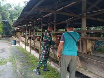 Dalam rangka menjaga kesehatan hewan ternak dan mencegah penyebaran penyakit mulut dan kuku (PMK), Koptu Budi bersama Bapak Irawan selaku pemilik ternak melaksanakan kegiatan pemantauan PMK pada hewan ternak di Kelurahan Batu Panjang, Kecamatan Rupat, Kabupaten Bengkalis. Kegiatan ini dimulai pada pukul 09.00 WIB hingga selesai.