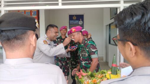 Polres Langkat Berikan Kue Ulang Tahun Secara Serentak kepada TNI dalam Rangka HUT TNI ke-80