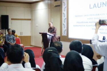 Bupati Banyumas Sadewo Tri Lastiono secara resmi melaunching 27 inovasi kualitas pelayanan publik yang digagas oleh para peserta Pelatihan Kepemimpinan Pengawas (PKP) Angkatan IX Kabupaten Banyumas pola kerjasama dengan Badan Pengembangan Sumber Daya Manusia Daerah (BPSDMD) Provinsi Jawa Tengah pada Rabu (8/10/25) bertempat di Smartroom Graha Satria.