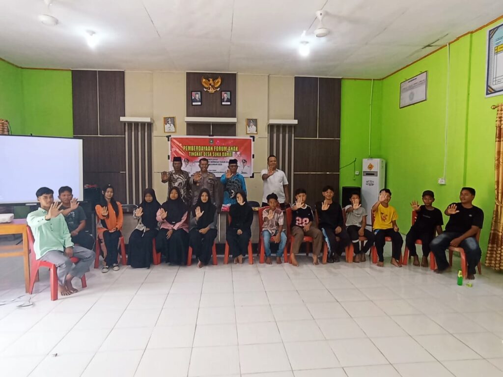 10 Oktober 2025 — Pemerintah Desa Suka Damai menggelar kegiatan Pemberdayaan Forum Anak Tingkat Desa, yang dipimpin langsung oleh Kepala Desa Suka Damai, Abdul Aris, S.Pd. Kegiatan ini bertujuan untuk memberikan ruang partisipasi bagi anak-anak dalam pembangunan desa serta meningkatkan kesadaran mereka terhadap hak dan kewajiban sebagai generasi penerus bangsa.