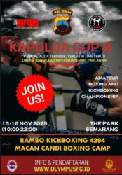 Semarang – jurnalpolisi.id Polda Jateng, Kota Semarang | Dalam rangka memperingati Hari Pahlawan pada 10 November 2025 mendatang, Polda Jawa Tengah kembali menggelar ajang bergengsi Kejuaraan Tinju dan Kickboxing Amatir “Kapolda Cup 2”. Kegiatan ini akan berlangsung di Atrium Utama The Park Semarang, Jl. Madukoro Raya, Semarang Barat pada 15–16 November 2025 mendatang. Kabid Humas…
